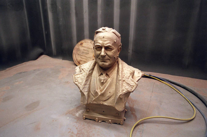 In June 2006 the bust was temporarily removed and two exact replicas were made by Morris Singer Art Founders in Braintree, Essex.