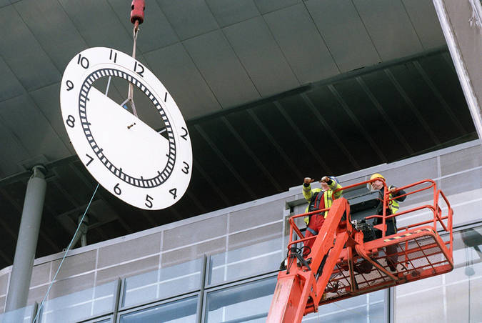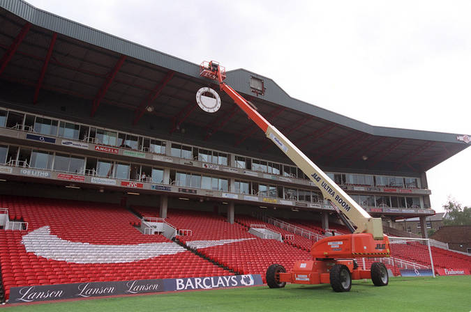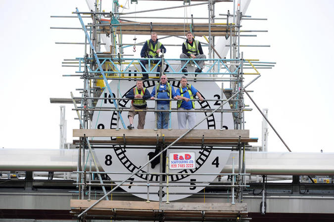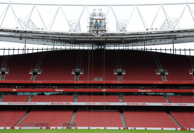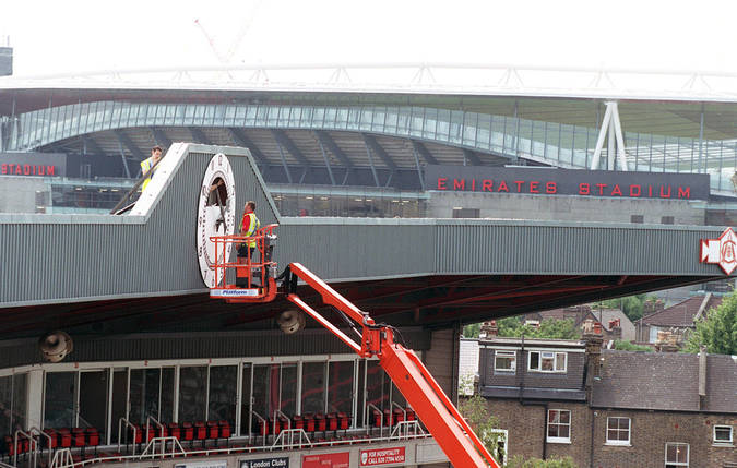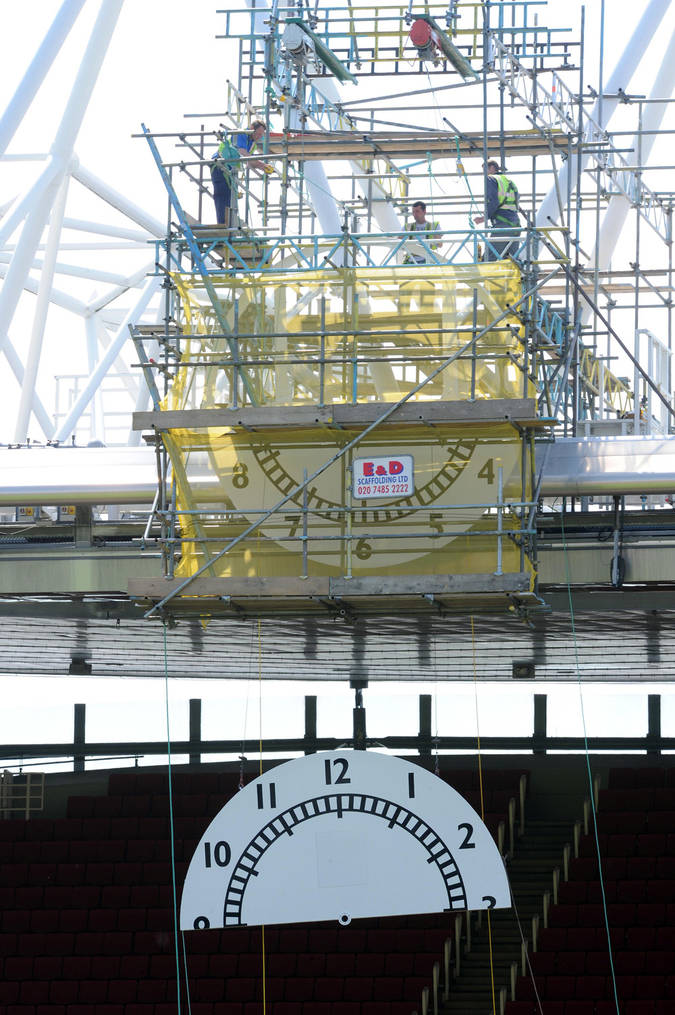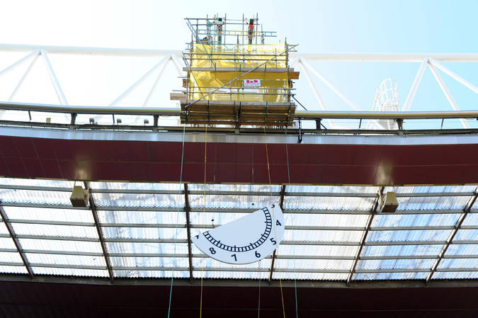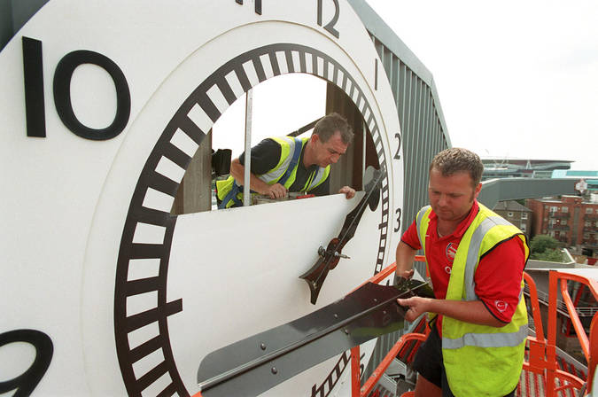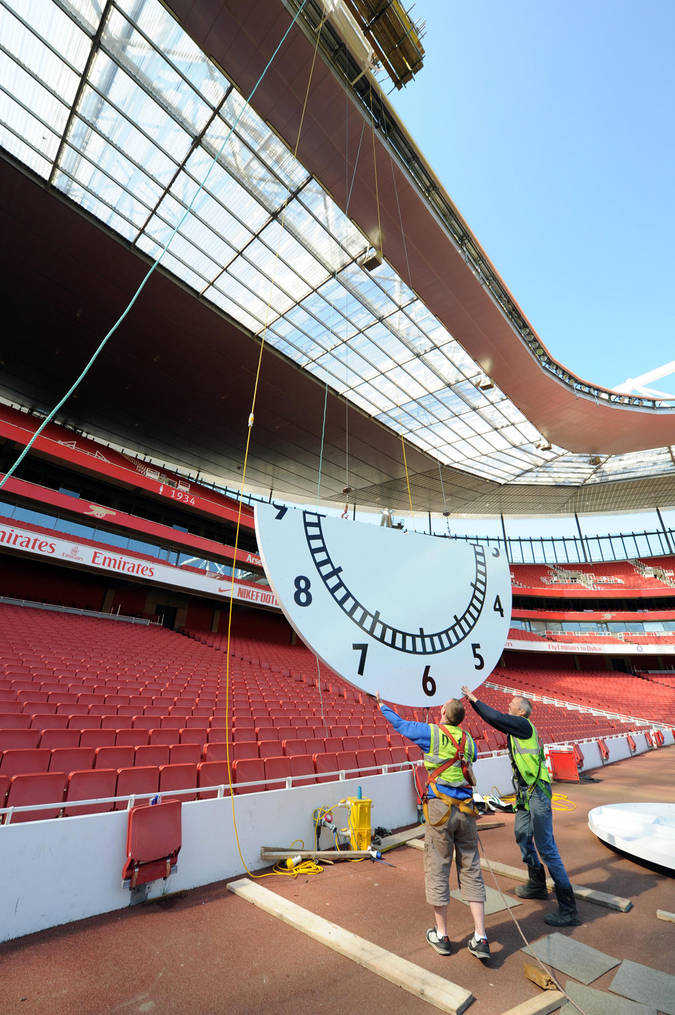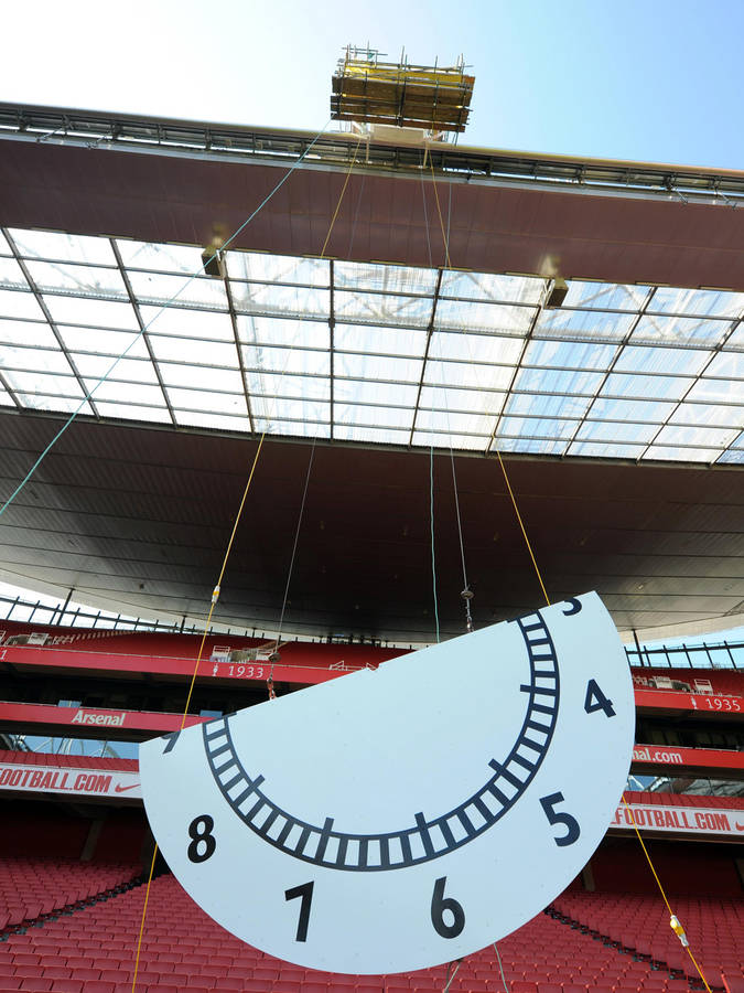 The Clock, which was taken down from Highbury on July 27th 2006, was lifted into place by a 25 tonne crane and took four people, nine hours to install.