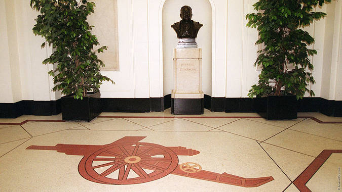 This stand housed the offices, players’ facilities and the main entrance (the famous Marble Halls). It cost £130,000 and had seating for 8,000. It is in the Marble Halls that the bronze bust of Herbert Chapman, Arsenal’s legendary manager who died in 1934, was positioned, and has remained to this day. In the Second World War Arsenal Stadium was used as a first aid post.