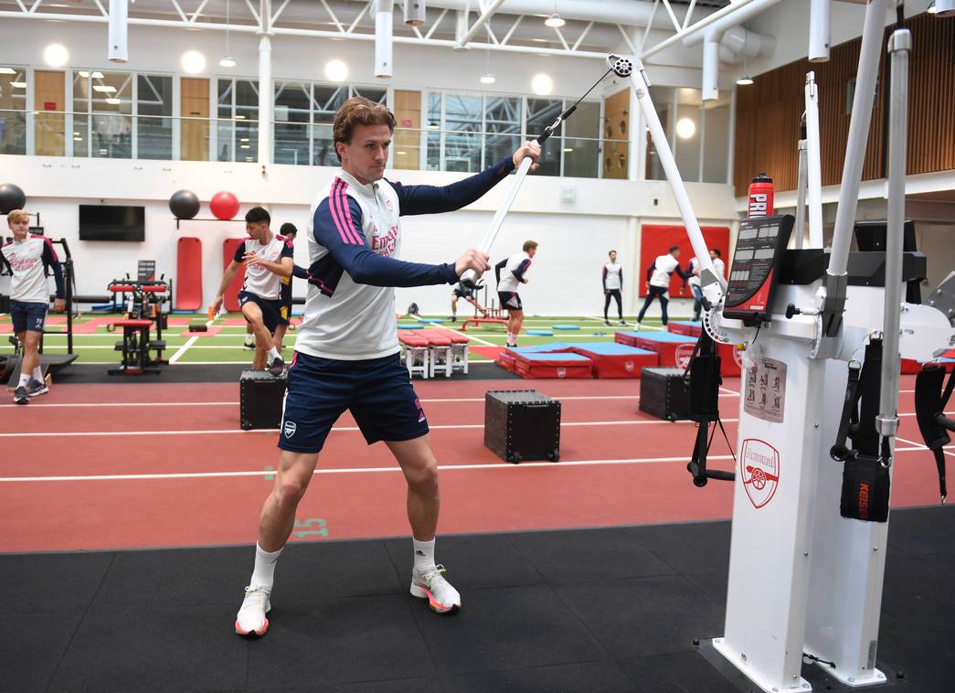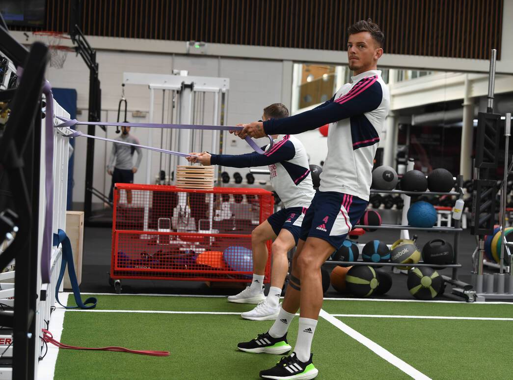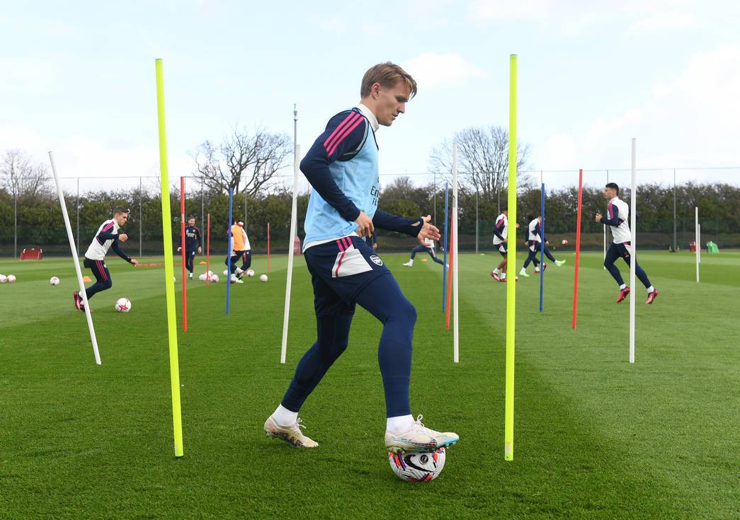 Ahead of Leeds United's visit to Emirates Stadium on Saturday, Mikel Arteta's squad were back in the thick of the action on the grass and in the gym as they get ready for the final stretch of league matches between now and the end of the season.