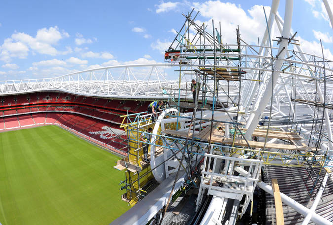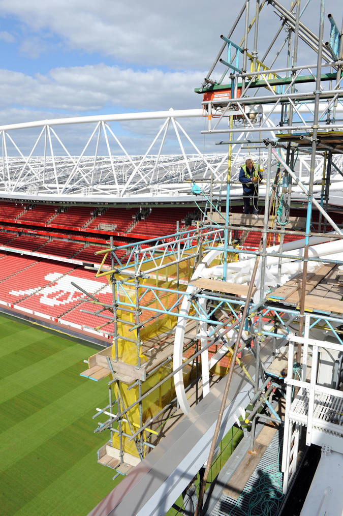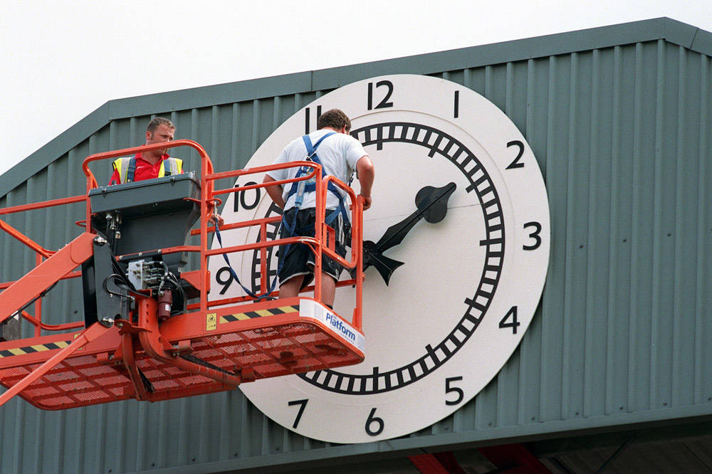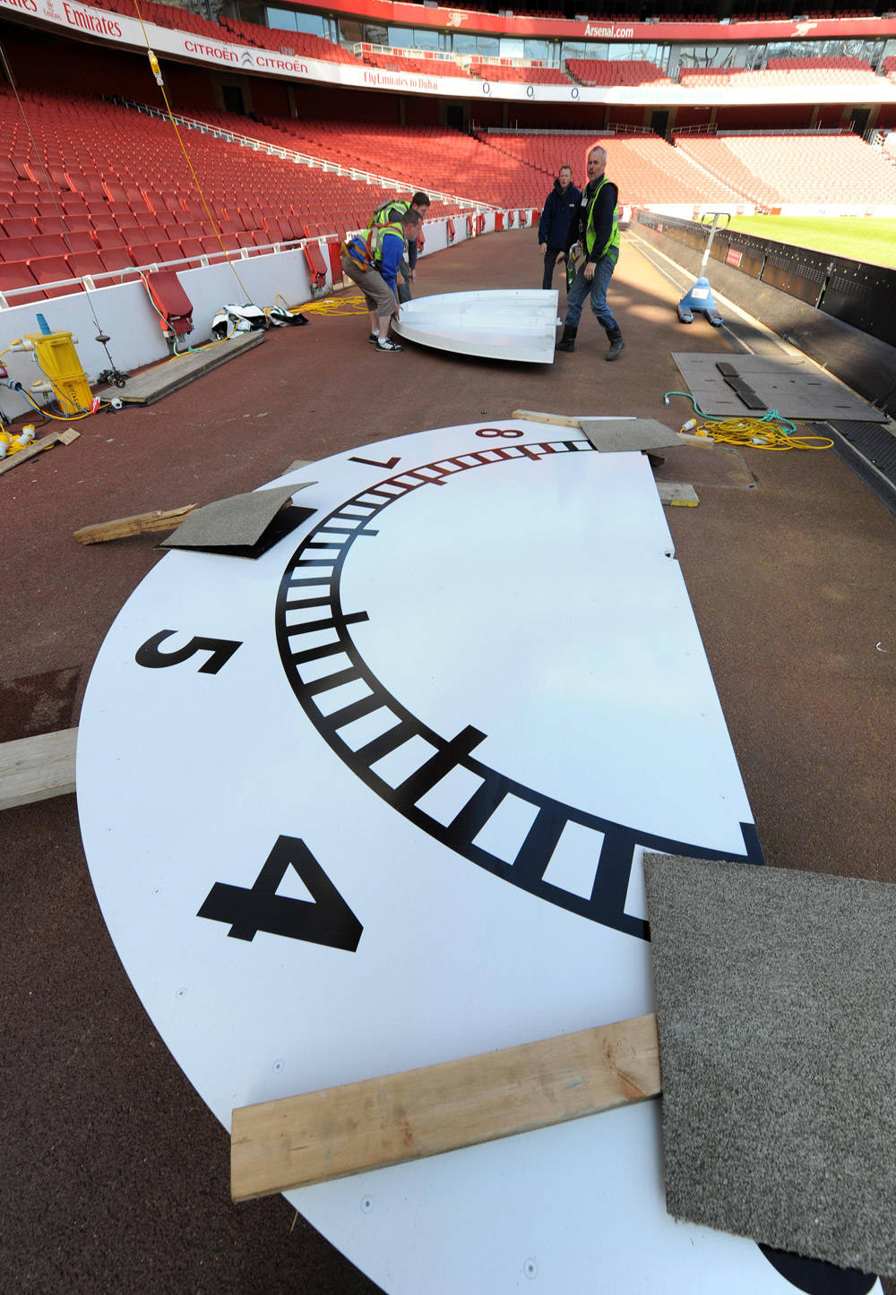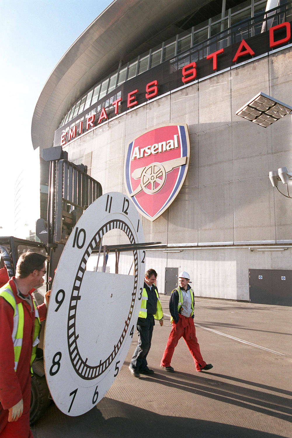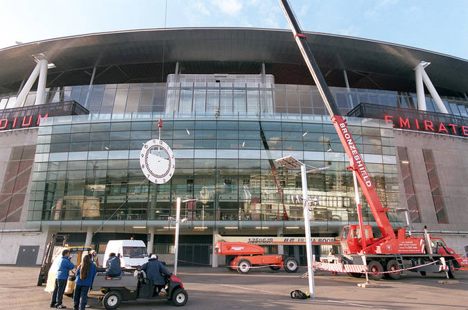 The Clock, which was taken down from Highbury on July 27th 2006, was lifted into place by a 25 tonne crane and took four people, nine hours to install.